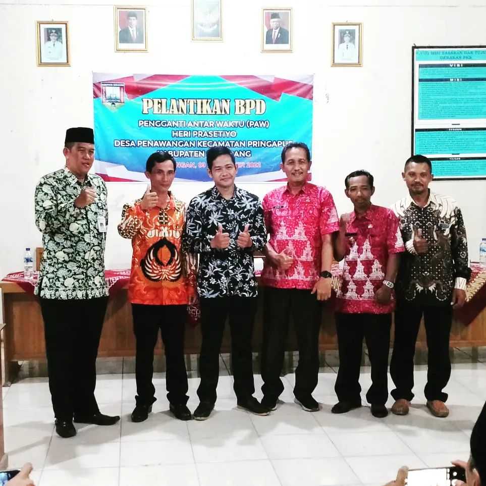Pada hari Rabu tanggal 9 November 2022 dilaksanakan pelantikan anggota Badan Permusyawaratan Desa (BPD) Pengganti Antar Waktu Desa Penawangan atas nama Bp. Heri Prasetiyo di Balai Desa Penawangan, Kecamatan Pringapus oleh Camat Pringapus Bp. Febru Suryanto, S.Sos, M.Si dengan dihadiri oleh Sekretaris Kecamatan Pringapus Bp. Slamet Sodiq, S.H, Kepala Desa Penawangan Bp. Sulistiyo, Ketua BPD Penawangan Bp. Purwadi, anggota BPD yang purna tugas Bp. Arif Cahya Rahmadi serta tamu undangan.